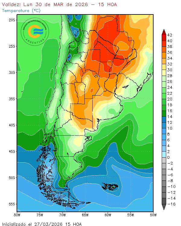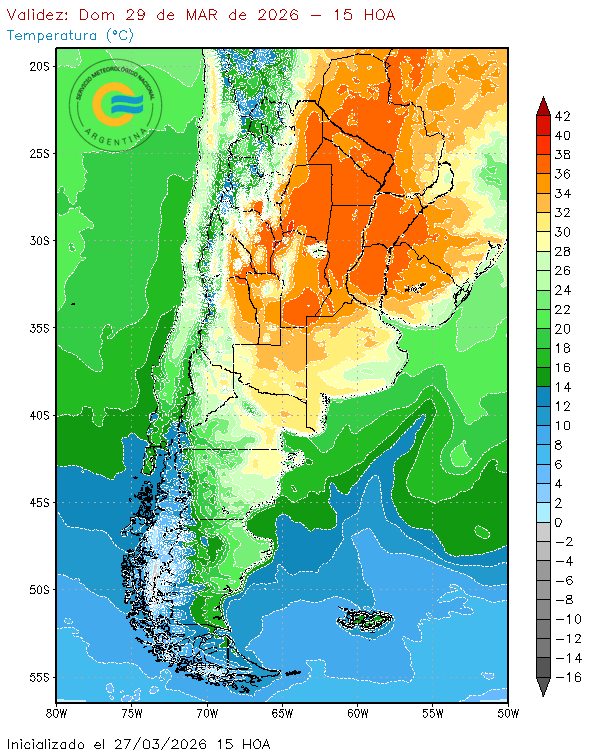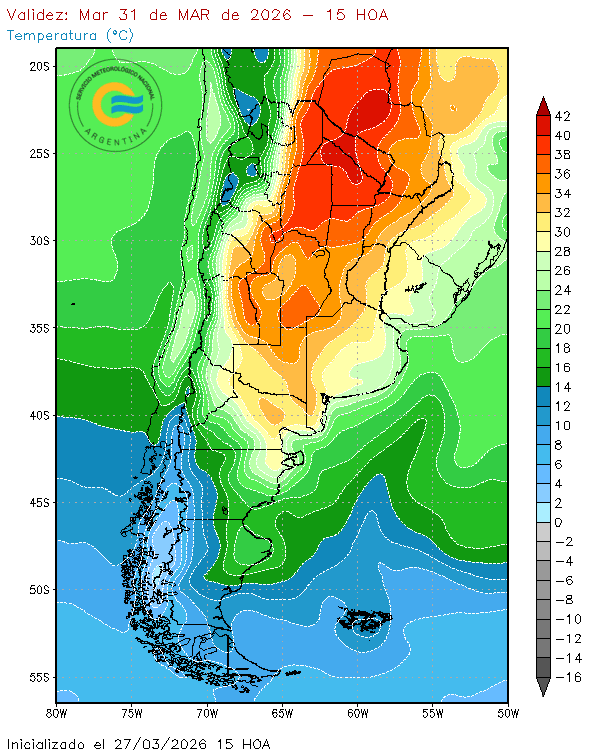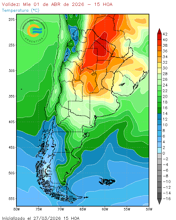 De acuerdo con los pronósticos emitidos este viernes 27 de marzo, el avance de un frente cálido desde el norte, provocará altas temperaturas en Formosa, Chaco, Santiago del Estero, Córdoba, San Luis, Santa Fe y el noroeste de la provincia de Buenos Aires.